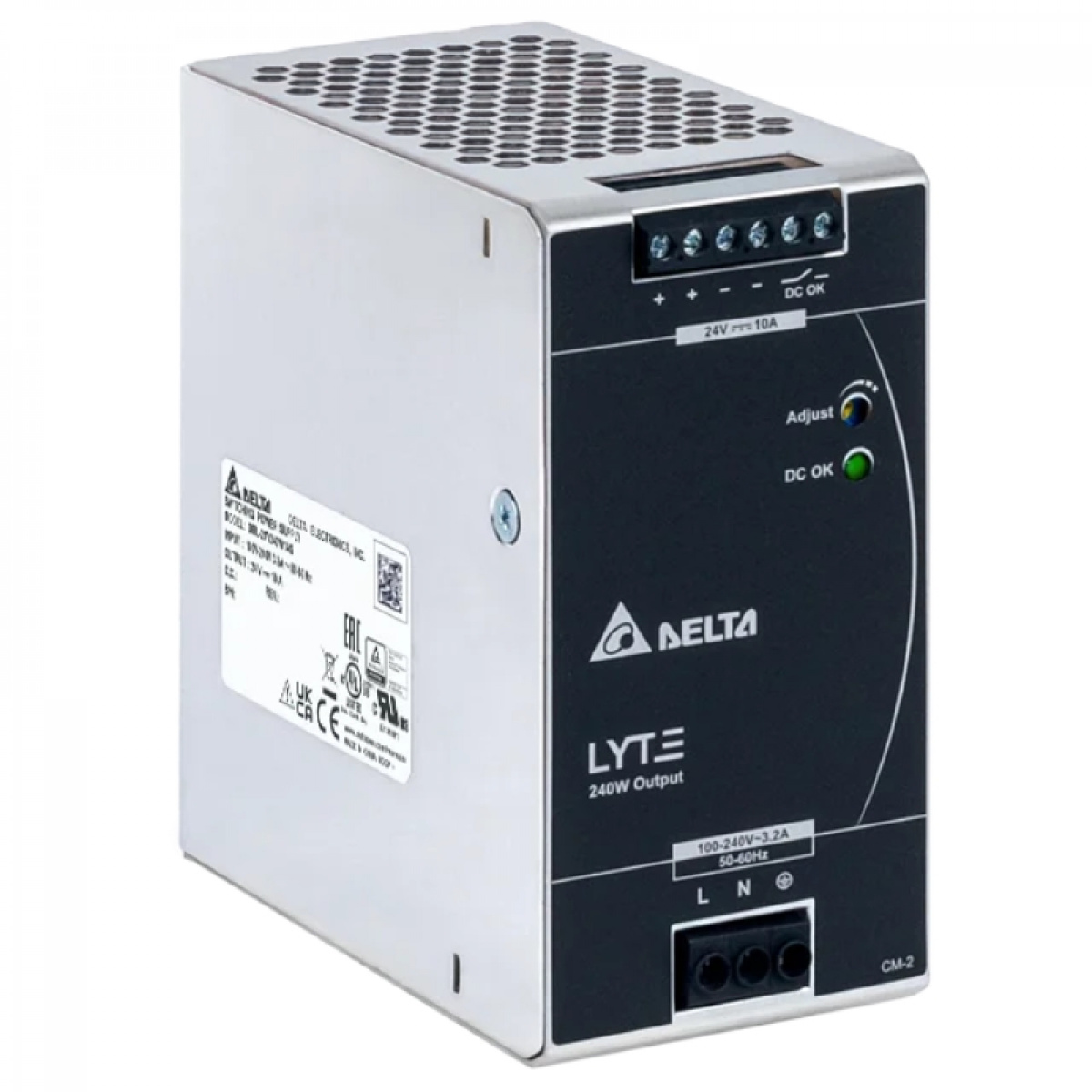 - Блок питания импульсный Delta Lyte, 240W, 10А, 85_264VAC (120_375VDC) / 24VDC, DIN35, реле DC OK, винт. клеммы, сталь. корпус