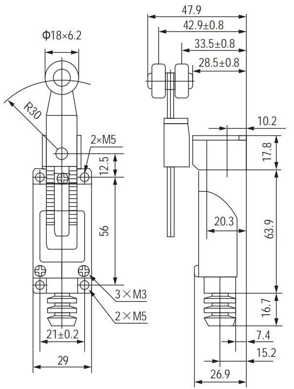 - Концевой выключатель TZ-8108 с регулируемой роликовой поворотной штангой IP65 HLT Арт. 085-23-401