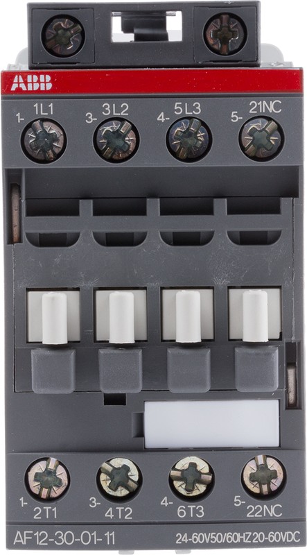 - Контактор ABB AF12-30-01-11 24...60VAC/DC, 3NO 12A(28A-AC1) 5.5kW, всп.контакт 1NC (4A-AC15), Арт. 1SBL157001R1101