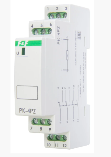 - Реле электромагнитное PK-4PZ-12 (промежуточное), 12В АС/DC, 8А, 2 переключающих, 2 замыкающих, 1 модуль, монтаж на DIN-рейке, Арт. EA06.001.014
