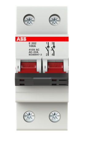 - Выключатель нагрузки E202/100r, 2P, 100A, 10kA, 2M ABB, Арт. 2CDE282001R0100