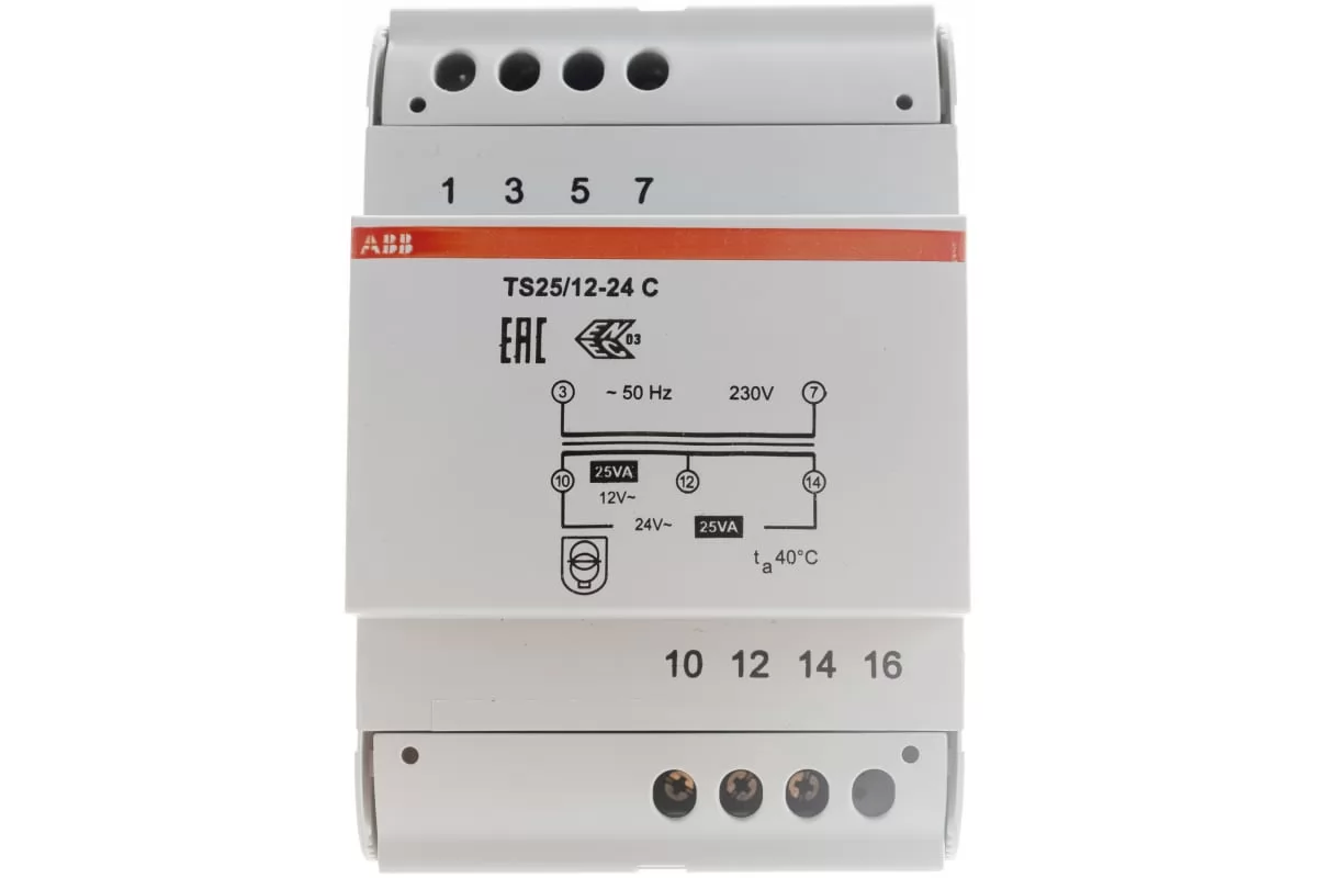 - Трансформатор модульный ABB TS 25/12-24C, 230/24 (2х12)В, 25ВА, 4М, Арт. 2CSM251043R0811
