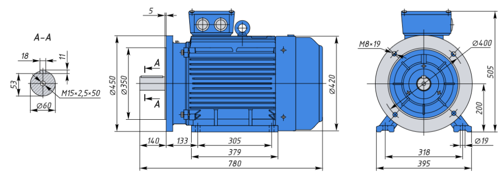 - A200L4 45кВт 1500об/мин Электродвигатель IM 2081 (комбинированный) арт. A200L4 2081