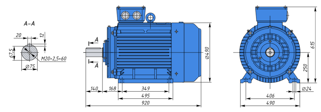 - A250M4 90кВт 1500об/мин Электродвигатель IM 1081 (лапы) арт. A250M4 1081
