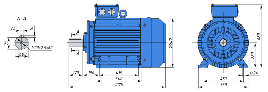 - A280M4 132кВт 1500об/мин Электродвигатель IM 1081 (лапы) арт. A280M4 1081