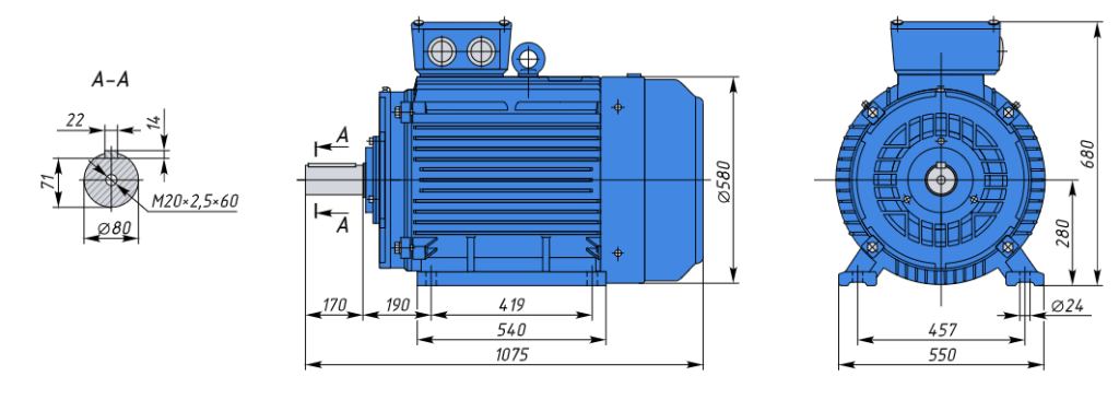 - A280M8 75кВт 750об/мин Электродвигатель IM 1081 (лапы) арт. A280M8 1081