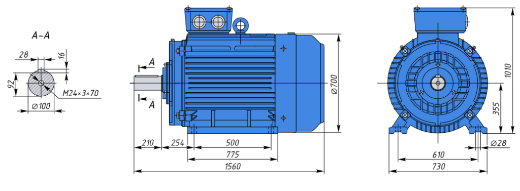 - А355S6 160кВт 1000об/мин Электродвигатель IM 1081 (лапы) арт. А355S6 1081