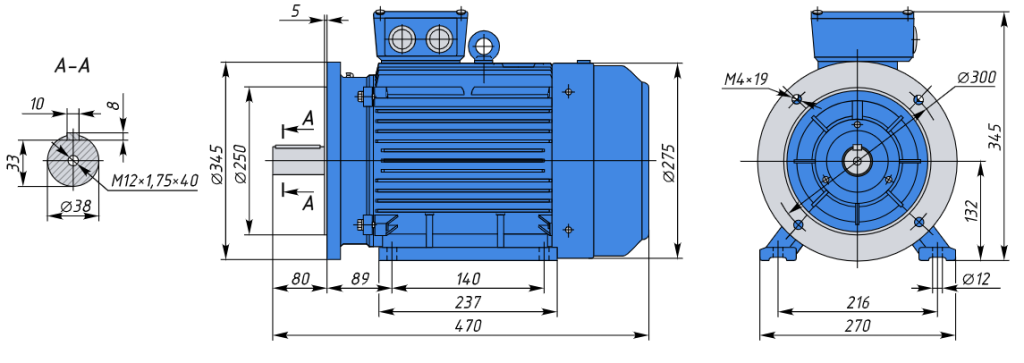 - АИР132S8 4кВт 750об/мин Электродвигатель IM 2081 (комбинированный) арт. АИР132S8 2081