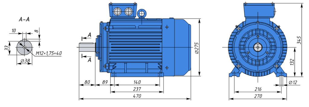 - АИР132S8 4кВт 750об/мин Электродвигатель IM 1081 (лапы) арт. АИР132S8 1081