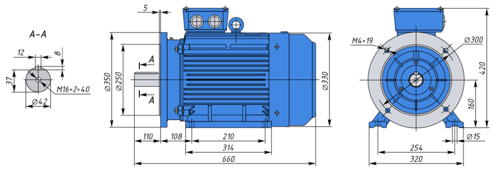 - АИР160М2 IE2 18.5кВт 3000об/мин Электродвигатель IM 2081 (комбинированный) арт. АИР160М2 2081