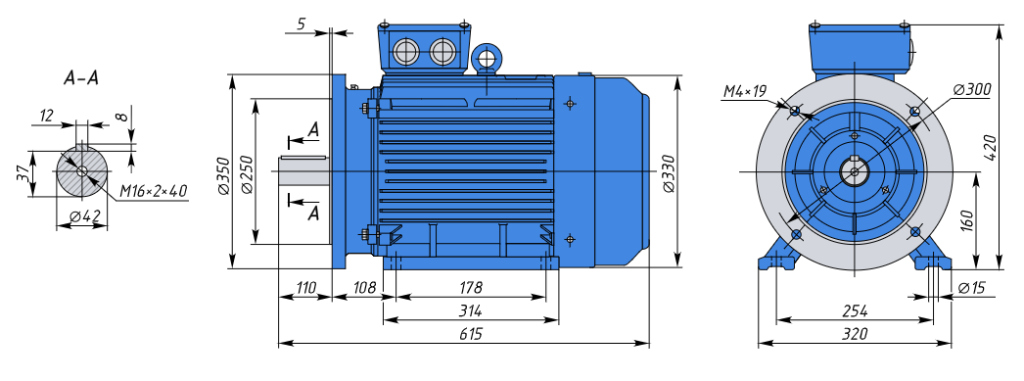 - АИР160S2 IE1 15кВт 3000об/мин Электродвигатель IM 2081 (комбинированный) арт. АИР160S2 2081