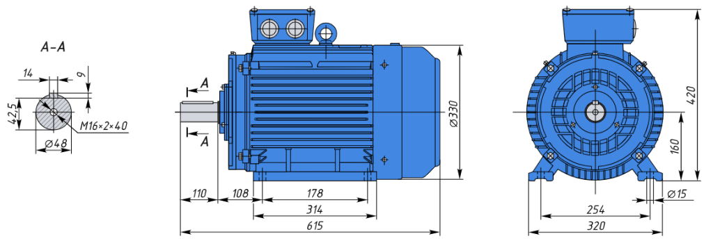 - АИР160S8 7.5кВт 750об/мин Электродвигатель IM 1081 (лапы) арт. АИР160S8 1081