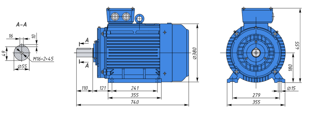 - АИР180М6 IE1 18.5кВт 1000об/мин Электродвигатель IM 1081 (лапы) арт. АИР180M6 IE1 1081