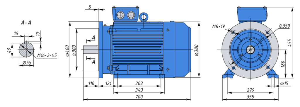 - АИР180S4 IE1 22кВт 1500об/мин Электродвигатель IM 2081 (комбинированный) арт. АИР180S4 2081