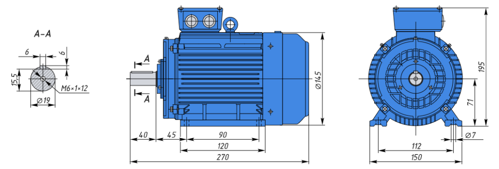 - АИР71В4 IE1 0,75кВт 1500об/мин Электродвигатель IM 1081 (лапы) арт. АИР71В4 1081