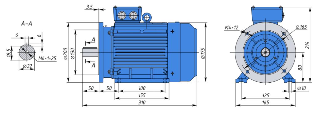 - АИР80В2 IE1 2.2кВт 3000об/мин Электродвигатель IM 2081 (комбинированный) арт. АИР80В2 2081