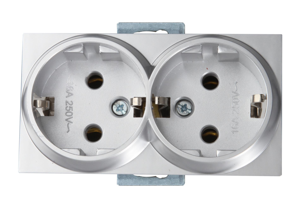 - Розетка Mutlusan Rita двойная 2x2P+E, керамическая, нерж. сталь Арт.2200-200-0282