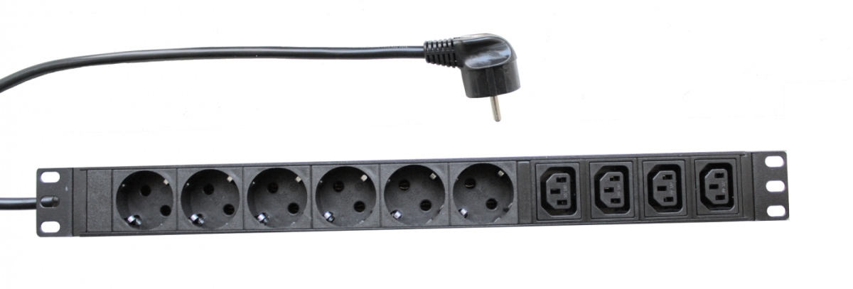 - Блок розеток 19", 6 розеток Schuko, 4 розетки C13, 16А, кабель питания 2м с вилкой Schuko