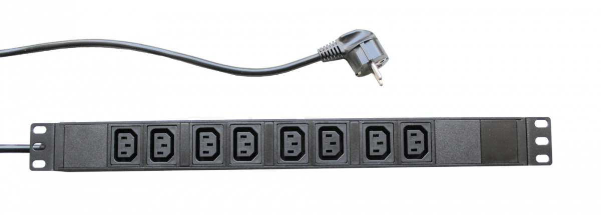 - Блок розеток 19", 8 розеток С13, 16А, кабель питания 1,8м с вилкой Schuko