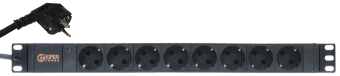 - Блок розеток 19", 8 розеток Schuko, 16А, кабель питания 2м с вилкой Schuko